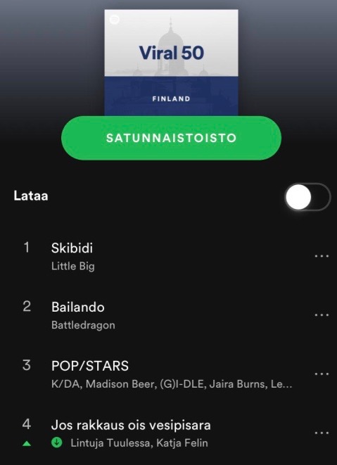 Spotifyn Viral 50 - listan paras sijoitus oli listan neljäs sija 30.11.2018.